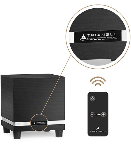 The Thétis subwoofers include a remote control for volume and standby. An LED display on the front panel provides visibility of the sound setting.