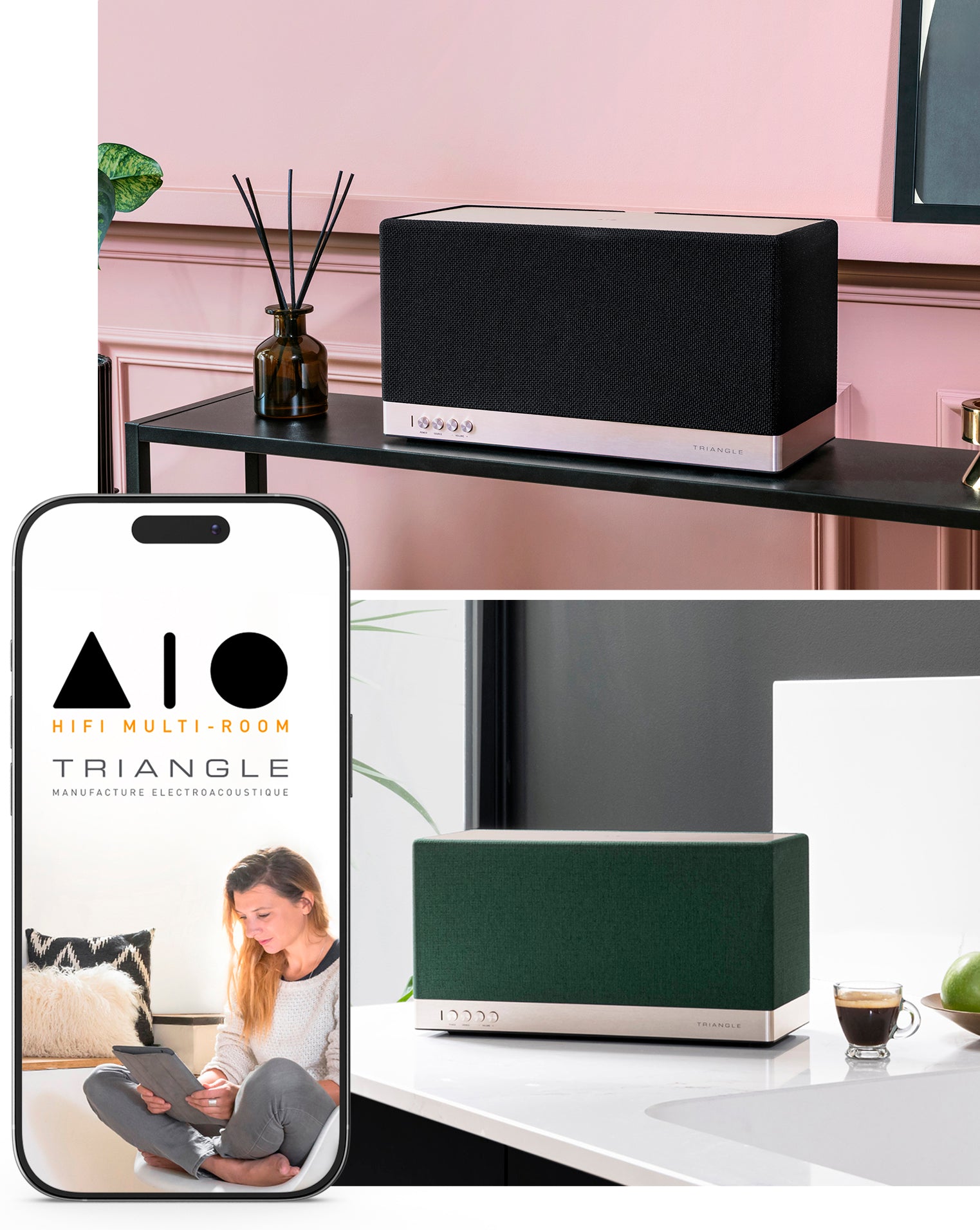 TRIANGLE unveils 5 new colors for the AIO 3, featuring refined fabrics created in collaboration with the Gabriel design house: Camel, Greige, Sage Green, Blue, and Black — joining the already available Ochre Red and Forest Green finishes.
