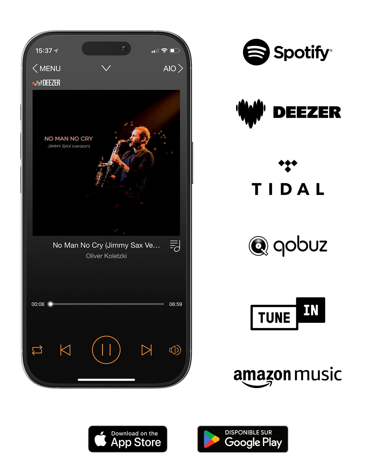 The TRIANGLE AIO app, available on Apple and Android (mobile and tablet), gives you access to the best streaming platforms available today. Use popular platforms such as Deezer, Spotify, Qobuz, Tidal and Amazon Music.