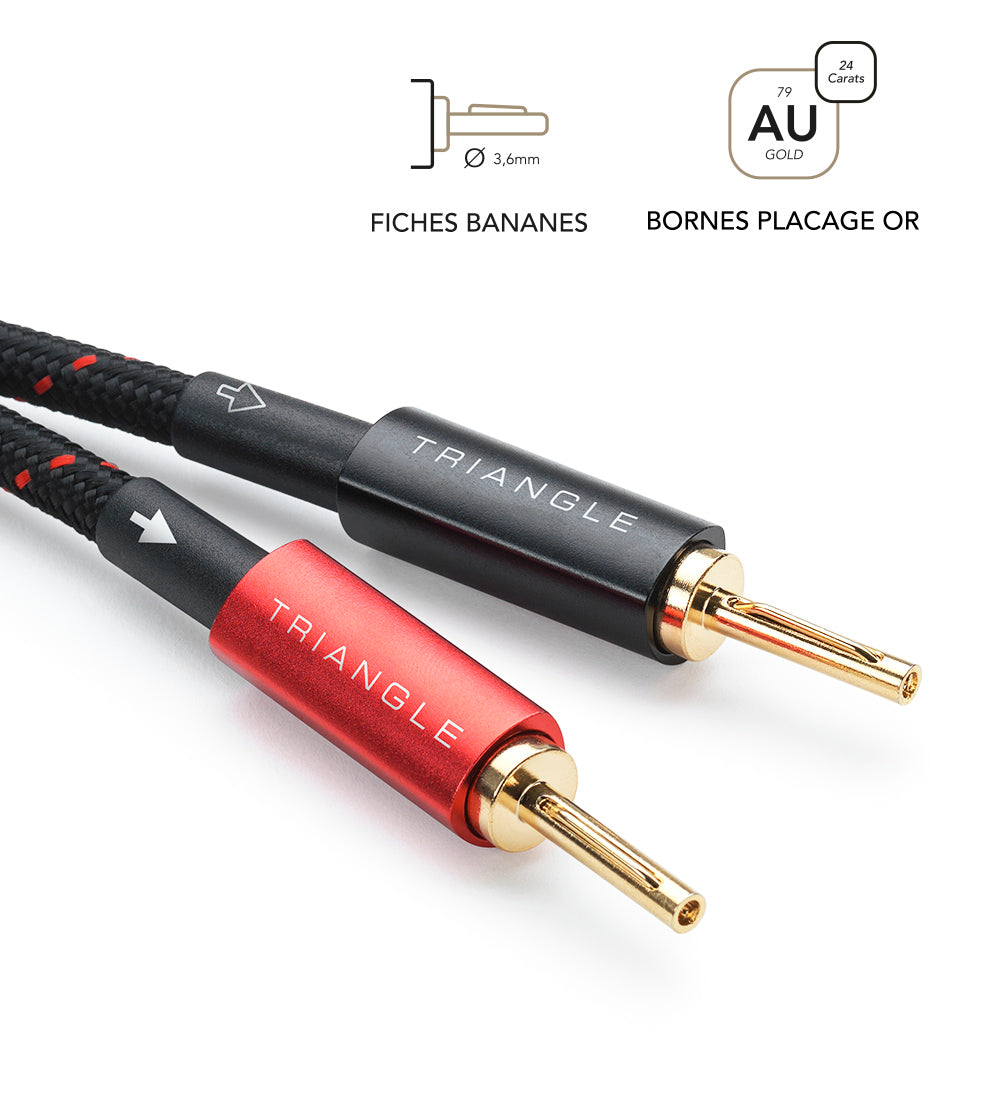 Leur conducteur en cuivre désoxygéné OFC à 99,99 % de pureté, composé d’une multitude de brins finement tressés, garantit une transmission optimale et restitue chaque nuance sonore avec naturel et maîtrise. Les fiches banane plaquées or offrent un contact fiable et une connexion rapide, pensée pour conjuguer exigence technique et confort d’usage.